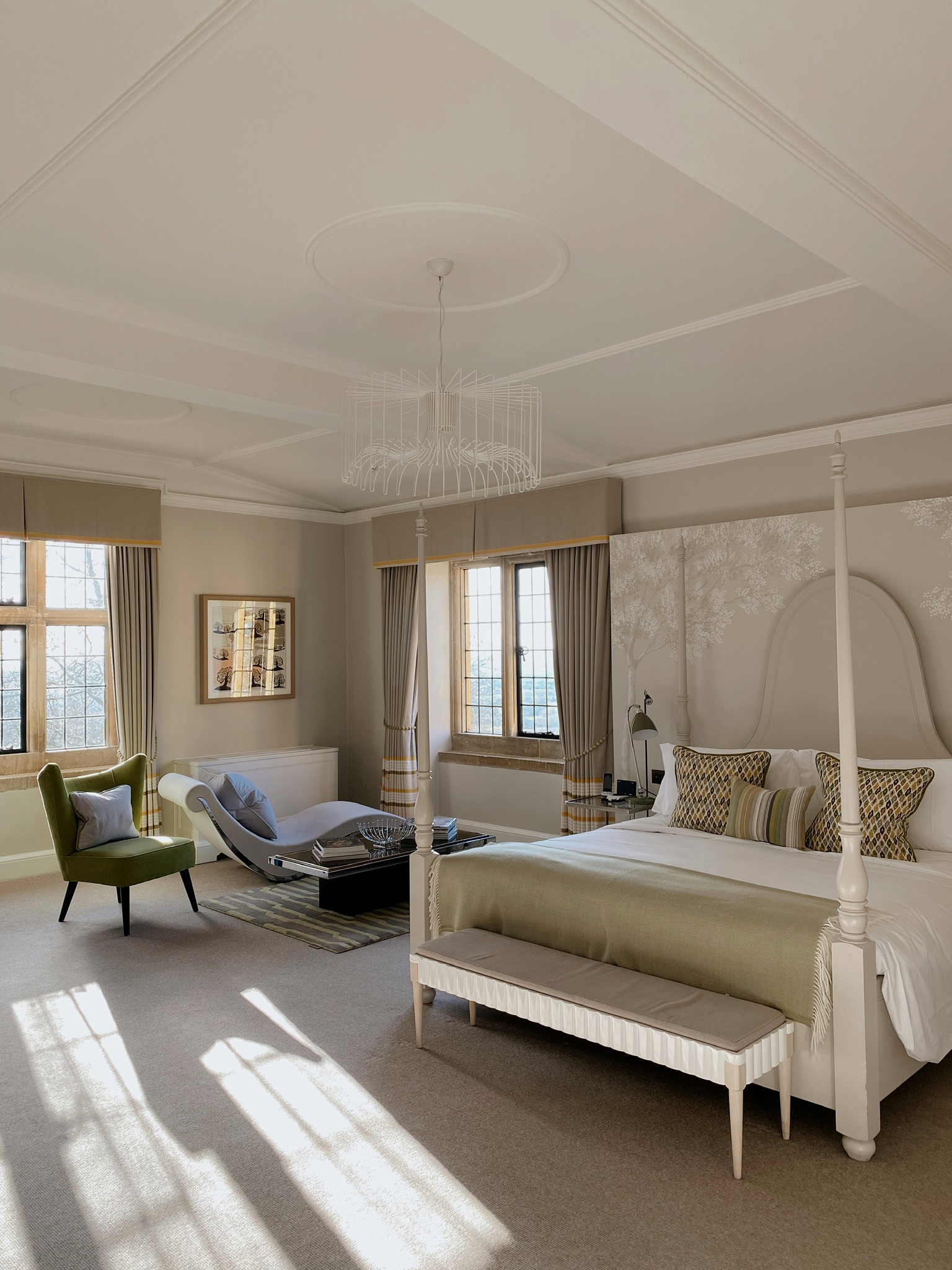 Cotswolds luxury at its finest, Thyme is a family-owned estate that sits within the village of Southrop, but still boasts 150 acres of ground for guests to roam. Aptly self-described as a ‘village within a village’, the hotel encompasses several converted cottages and farmhouses dotted across the estate, as well as a spa, outdoor pool, cookery school, and stunning Ox Barn restaurant where chef Charlie Hibbert is at the helm. Bedrooms are extremely luxurious, featuring pastel furnishings, and jewel-coloured bathtubs.