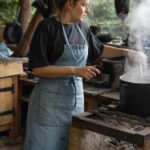 Heat the oil in a large heavy bottomed pan and add the shallots, cooking on a medium heat until softened. Add the garlic and cook for 1-2 minutes more before adding the pasta water and stock. Simmer for 5 minutes, before adding the fregola into the pan with the asparagus.