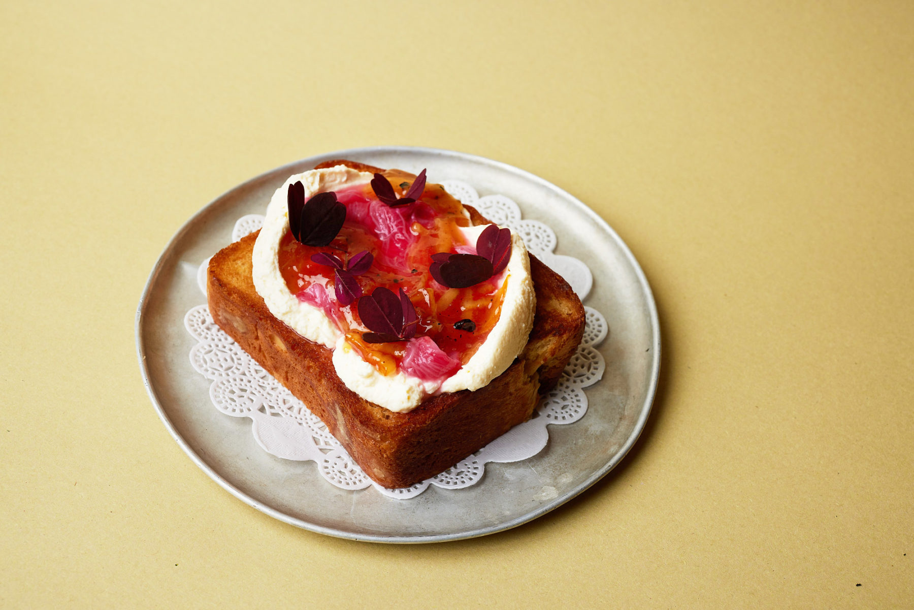 There are a few parts to the dish but main hurdle is the bread itself. It’s basically an over proofed brioche that’s sliced, fried in butter and topped with a very light, fluffy ricotta & our blood orange & pepper berry marmalade. Although basically anything on fried brioche will be resolutely good.
