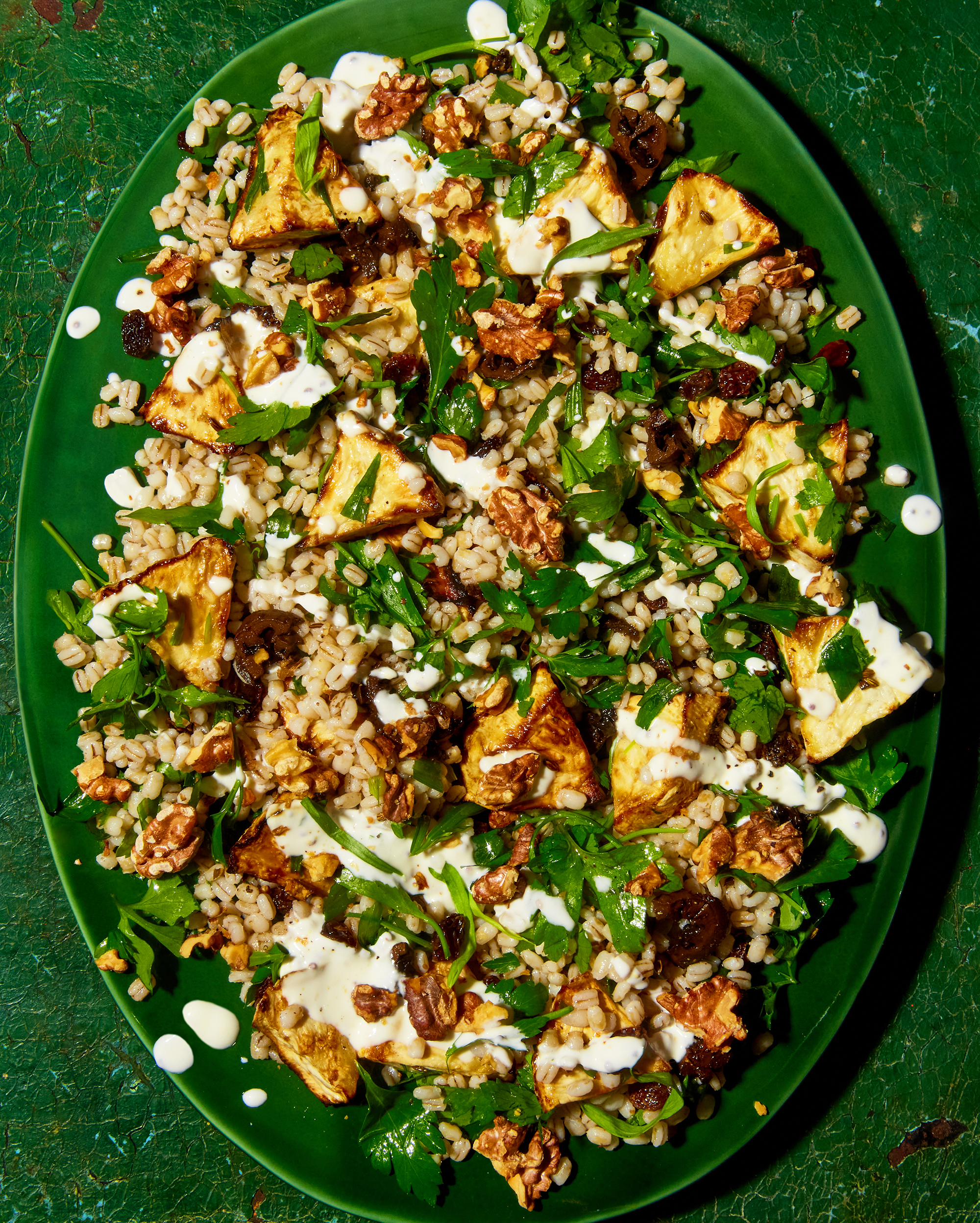 Celeriac & Pearl Barley Salad with Roasted Garlic