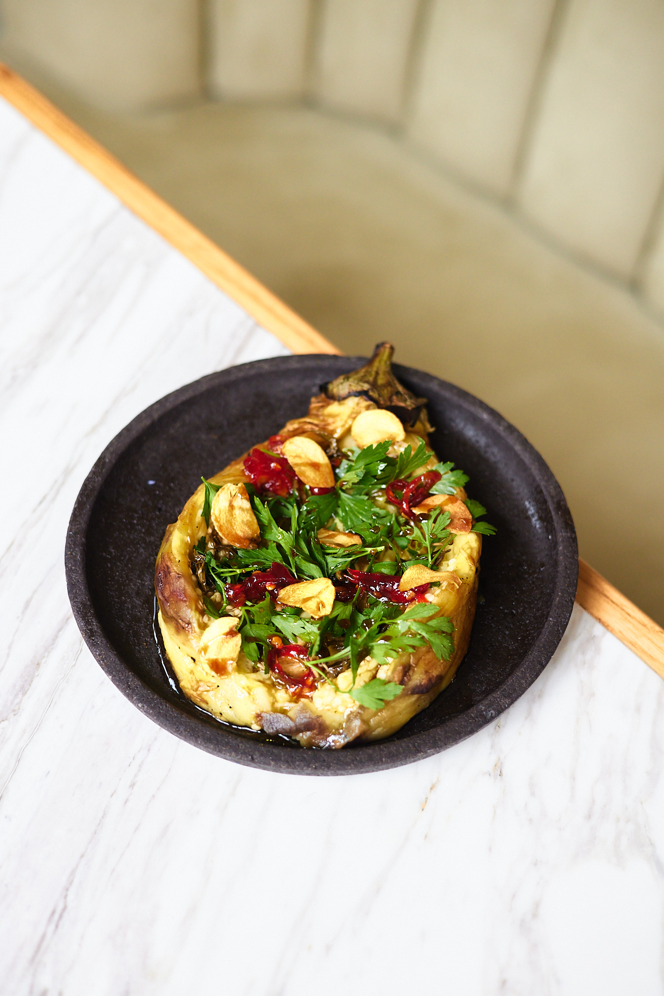 BBQ Aubergine With Chilli Jam & Fried Garlic